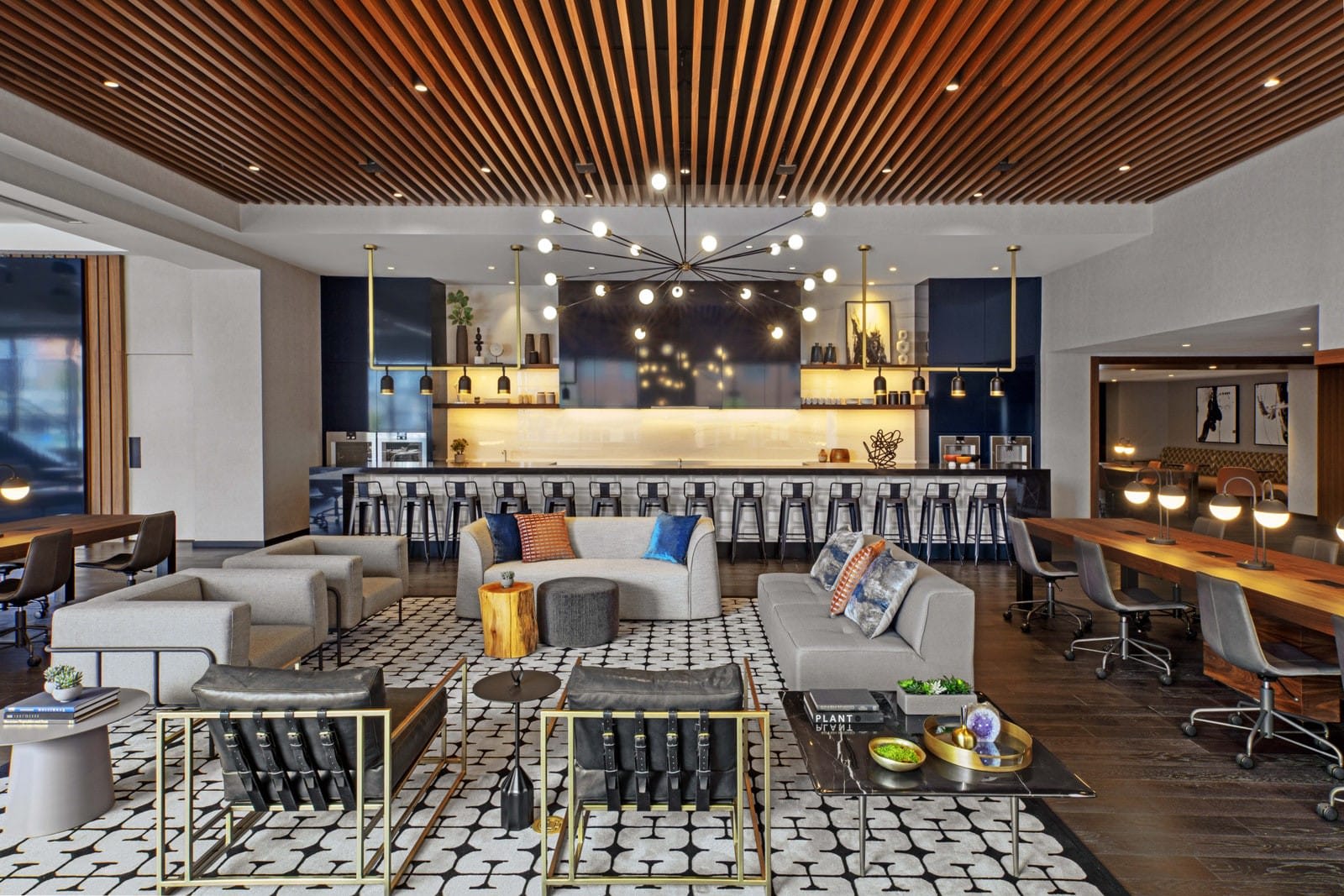The towers are linked by a bridge and feature a central courtyard with plenty of areas to sit.